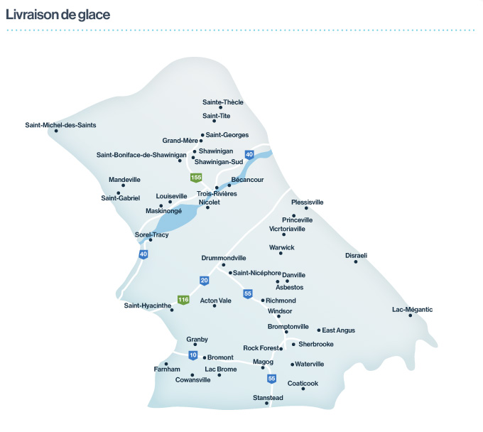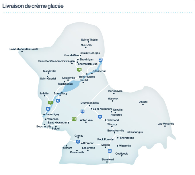 Notre réseau dispose de 2 centres de distribution basés à Trois-Rivières et Drummondville, ce dernier étant la plaque tournante de nos activités. Notre équipe de transport achemine la marchandise vers ce centre à l’aide d’un train routier pour qu’elle puisse être répartie aux 16 chauffeurs qui composent notre équipe de livraison. Notre quai de chargement de 8 portes facilite la répartition des commandes vers les 7 tracteurs, 8 remorques et 11 camions porteurs qui composent notre flotte. L’ajout de 2 camions Fuso vient compléter cet inventaire de véhicule qui nous permet d’effectuer nos livraisons efficacement.
